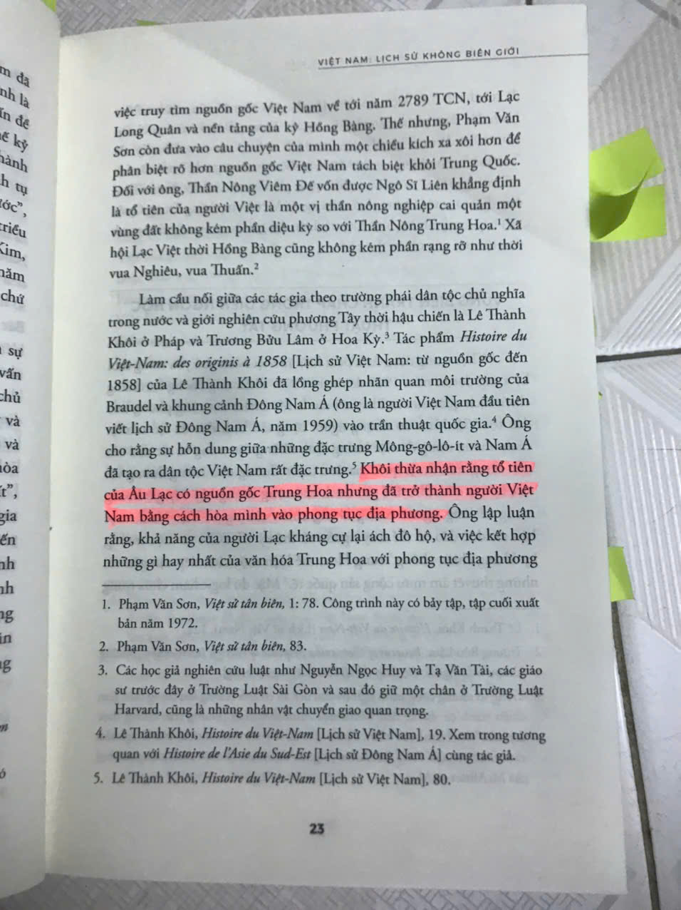 + “Khôi thừa nhận rằng tổ tiên của Âu Lạc có nguồn gốc Trung Hoa nhưng đã trở thành người Việt Nam bằng cách hòa mình vào phong tục địa phương” (tr. 23).