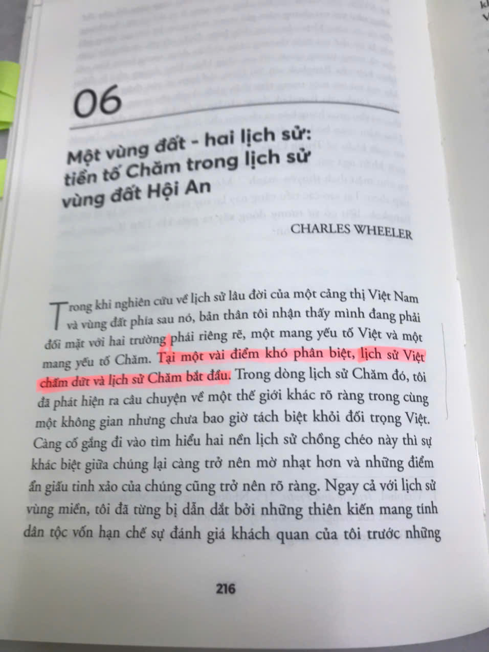Trang 216 nội dung ghi: “Tại một vài điểm khó phân biệt, lịch sử Việt Nam chấm dứt và lịch sử Chăm bắt đầu”.