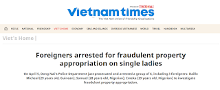 Theo Công an tỉnh Đồng Nai, thời gian qua trên địa bàn nổi lên tình trạng đối tượng người nước ngoài lừa đảo chiểm đoạt tài sản, với phương thức sử dụng mạng xã hội để làm quen kết bạn với các nạn nhân là phụ nữ, rồi đưa ra các lý do, như; bị tai nạn lao động, cần tiền để xử lý bảo hiểm, tặng quà cho các nạn nhân.… Sau đó, các đối tượng yêu cầu các nạn nhân chuyển tiền vào tài khoản ngân hàng do chúng cung cấp, rồi chiếm đoạt số tiền rất lớn.