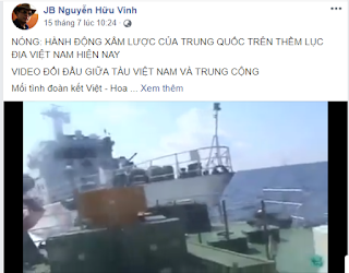 Sau khi tung video clip này lên mạng, Nguyễn văn Hải ở Mỹ đã sử dụng đăng lại với tựa “VIDEO ĐỐI ĐẦU GIỮA TÀU VIỆT NAM VÀ TRUNG CỘNG NGÀY 15/7/2019”. Tất nhiên, với clip nóng như vậy, đám con nhang đệ tử của lũ hủi nô vong quốc lập tức chia sẻ rần rần kèm theo những giọng điệu khả ố, mạ lỵ dân tộc.