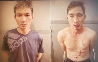Ảnh: 2 tên cướp tiệm vàng Đức Nam là Lương Văn Đạt (trái) và Nguyễn Văn Doanh đã bị bắt sau 8 giờ gây án.