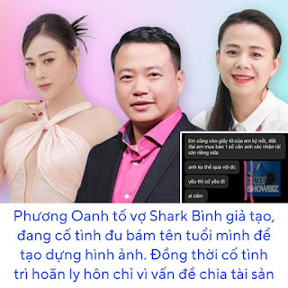 VẤN ĐỀ ở đây là: tại sao trước kia anh ấy có những người khác thì chị ta không “thượng tôn pháp luật”, không “vì con” để dứt điểm thủ tục ly hôn? Mà chỉ khi chúng tôi đến với nhau thì chị ta mới “thượng tôn pháp luật”, tỏ ra “tổn thương đau buồn” và có những lời lẽ ám chỉ để mọi người lầm tưởng Oanh “cướp chồng” của chị ta? Nói đến đây là thấy dễ hiểu rồi phải ko? Vì Oanh là người nổi tiếng, chỉ có dựa vào điều này thì mới biến chị ta từ một người chả mấy ai biết đến ngoài cái danh “vợ Shark Bình” trở thành một “nữ cường đứng lên vì con” được nhiều người biết đến. Oanh nghĩ rằng: người nữ cường thật sự thì sẽ không bao giờ bất chấp thủ đoạn chà đạp lên người vô tội để đạt được danh vọng như thế. Một người mẹ vì con thật sự cũng sẽ không mang ảnh các con khi còn bé tận 8 năm trước ra làm vũ khí với những lời lẽ “đáng thương” để cho thiên hạ hả hê Toxic khắp nơi như vậy! Oanh thật sự “nể” cái dã tâm đó của chị ta.