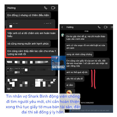 Người đóng vai “Quỳnh Búp Bê” vừa lên tiếng tố “vợ của người yêu” giả tạo, cố tình đu bám tên tuổi của cô để tạo drama, đồng thời tung bằng chứng chứng minh vợ Shark Bình trước đó cũng cổ suý cho anh yêu người mới, chỉ cần “kí nốt giấy tờ mua bán đất đai, tài sản riêng” rồi sẽ ly hôn.