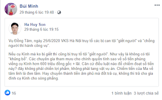 Cuteo@   Hôm 29/6/2020, Bùi Thị Minh là con gái của Bùi Viết Hiểu đã đăng lại status của luật sư Ha Huy Son trên FB Bùi Minh, nguyên văn như sau:   “Vụ Đồng Tâm, ngày 25/6/2020 VKS Hà Nội truy tố các bị can tội “giết người” và “chống người thi hành công [...]