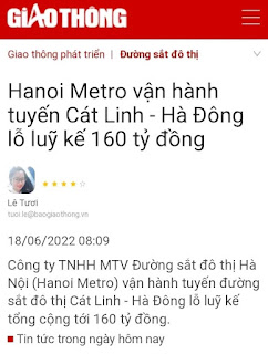 Khoai@     Sáng nay vài tờ báo đăng tải thông tin Đường sắt Cát Linh – Hà Đông bị lỗ tới 160 tỷ đồng từ 2020 đến nay, làm dân mạng hoang mang và không ít người đã có những phản ứng tiêu cực. Lý do để người đọc phản ứng là tác giả các [...]