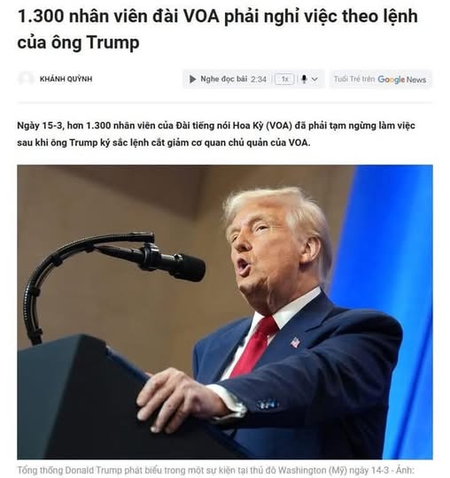 Lâm Trực@ Quảng Ninh, ngày 19/3/2025 – Chính quyền Tổng thống Trump vừa ra quyết định cắt giảm hoàn toàn ngân sách cho hệ thống truyền thông đối ngoại của Mỹ, khiến các đài như VOA, RFA, RFE, Radio Martí và Alhurra phải đóng cửa sau nhiều thập kỷ hoạt động. Động thái này không chỉ [...]