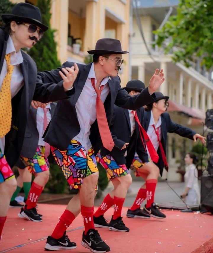 Thầy hiệu phó cùng giáo viên ở trường THPT Thái Phiên (Hải Phòng) hóa trang thành vũ công chuyên nghiệp, biểu diễn màn văn nghệ độc lạ trong ngày tổng kết năm học. 16 thầy, cô giáo diện áo vest, quần đùi nhiều màu sắc, đeo kính đen và gắn râu giả xuất hiện trên [...]